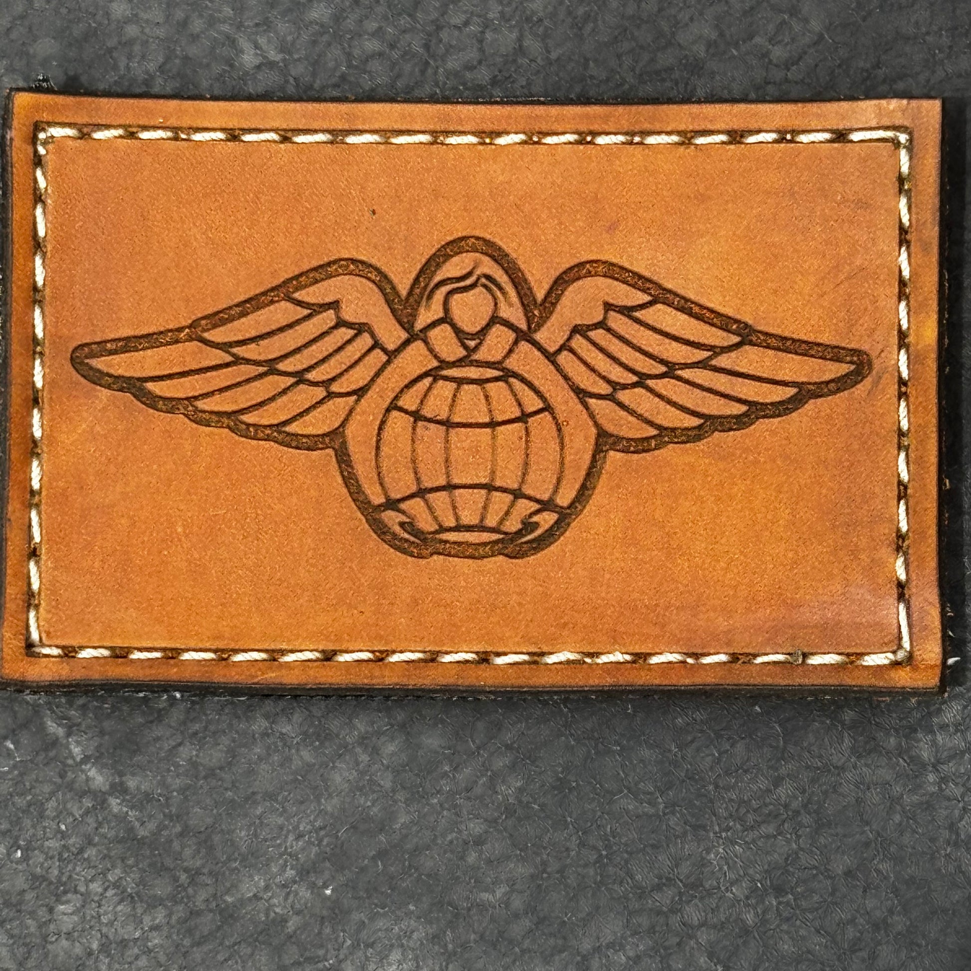 3.5" wide, engraved REAL leather stitched to hook and loop. Ready for any mission!