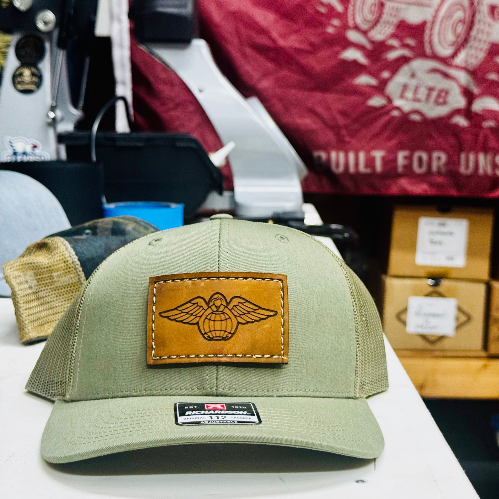 PJ Angel of Mercy premium leather patch stitched to the hat.